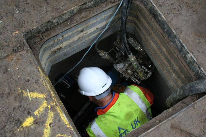 TT-UK have a range of steerable pit launch machines known as GRUNDOPIT. In the range is a machine called GRUNDOPIT Manhole version dedicated to this precise application.