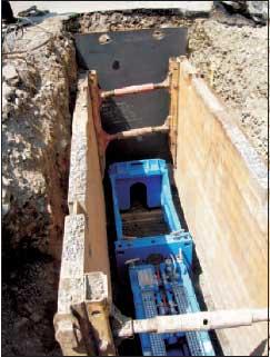 After the jobsite is finally set up, the working pits (Exit pit = machine pit, intermediate pits if required, starting pit = pipe launch pit) are prepared and shored in accordance to the existing regulations. Examples: