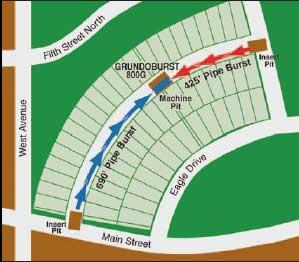 After having determined the required capacity of the pipe bursting rig or hammer and making sure that soil conditions and the distances to existing pipes and structures allow the installation of the desired new pipe, the next step is to determine the individual replacement lengths and the position of the required launch and exit pits.