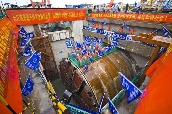 Two Herrenknecht tunnel boring machines, the largest in the world with a diameter of 15.43 meters, successfully completed their crossing beneath the Yangtze River in Shanghai. On May 28 and September 5, 2008, the two Mixshields met their target shafts precisely on the Yangtze river island Changxiang – far ahead of schedule. The 7,472 meter long tunnels connecting the Shanghai district of Pudong with Changxiang island have created efficient transport systems in only 20 months.