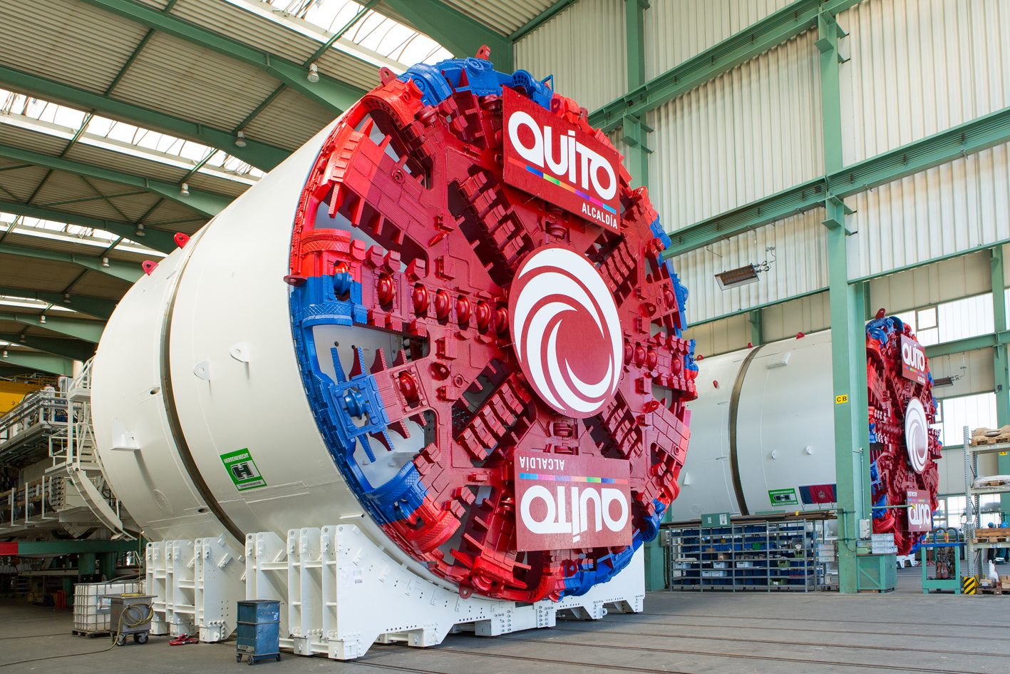 The EPB Shields with diameters of 9.36 meters were completed in Schwanau in late August 2016. The mayor of Quito, Dr. Mauricio Rodas, visited the Ortenau region for the technical acceptance. Together with representatives of contracting joint venture Acciona / Odebrecht and client Quito Metro, the guests admired and inspected the concurrently assembled and completed machines in detail.
