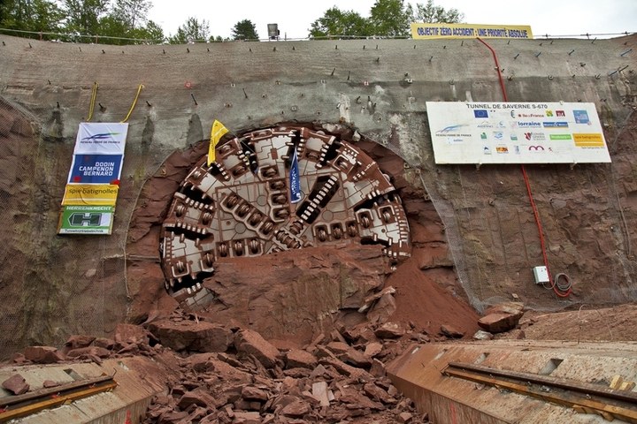 The Schwanau engineers adapted the Herrenknecht tunnel boring machine known as "Charlotte" (open mode convertible EPB Shield S-670, Ø 10,010 mm) to the geological conditions in the project in such a way that it could handle excavation in two different soil types. For the first 200 meters of the northern tunnel it worked through unconsolidated rock (a mixture of sandstone and shell limestone) in the closed EPB (Earth Pressure Balance Shield) mode. In accordance with the prevailing hard rock (red sandstone) that followed, the rest of the advance was continued in open mode. For switching between modes all that is needed are some adjustments at the cutting wheel. The conveyor belt and the screw conveyor remain installed on the machine in both modes. The Saverne project is the first time a Herrenknecht TBM with a convertible EPB shield has been used that can also handle the open hard rock mode with belt conveyor discharge. "The Tunnel de Saverne is a special challenge," says Herrenknecht project manager Stephan Hanusek, and continues: "The conversion went without a hitch, so the machine was ready again in a few days." Since the breakthrough of the first tunnel, the machine is being disassembled and the individual components transported back to the launch platform at Ernolsheim lès Saverne. "Charlotte" is scheduled to begin excavation of the southern tube in October.