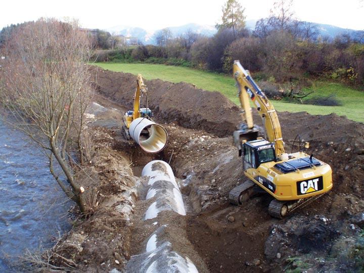 The first phase, from the intake works Penz in Aichdorf to the Pöls Bridge, was initiated October 1st 2008 and will be completed in March and on schedule. Between March and June 2009 and for the second construction phase, pipes will be laid from a railway bridge to the power house. The third phase is planned to run from June to September 2009, when the lines shall finally meet between the railway bridge and the Pöls Bridge.