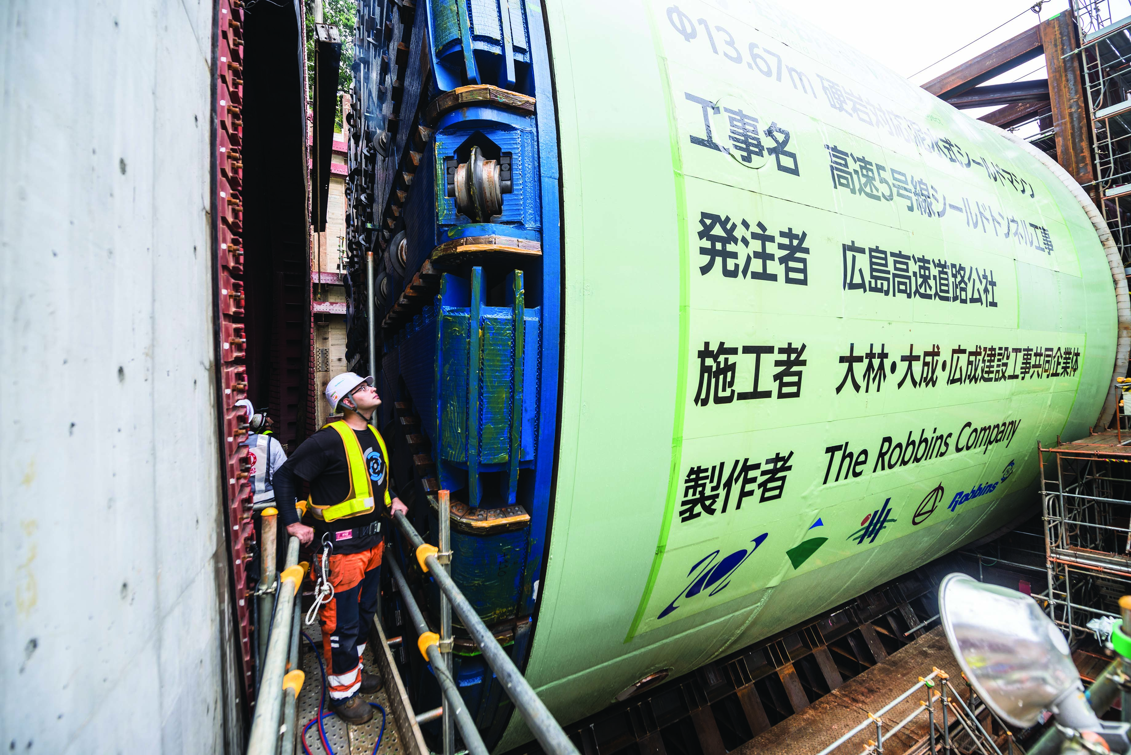 The massive machine is the country’s first foreign-made large diameter Slurry TBM to excavate hard rock in Japan. “There is a lot of hard rock in Hiroshima,” said Mr. Akai, “and Robbins has a lot of experience boring hard rock.”