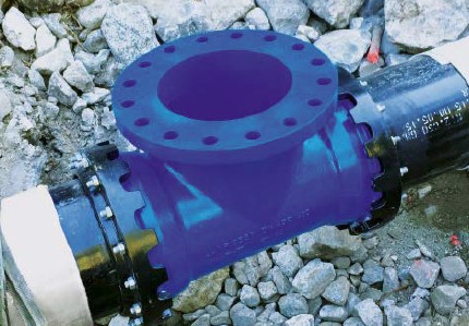 Inspection and cleaning opening, DN 400/400 double socket tee with flanged branch, special design K 15 with flanges PN 63 bars [Source: Roger Saner]