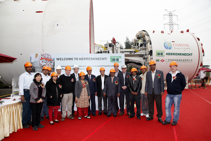 On the Indian subcontinent there is a great need to improve the infrastructure in the areas of transport and supply. In the rapidly growing large cities, Herrenknecht technology is heavily involved in the expansion of both the water supply and the metro systems. This year an Indian record of 525 meters of drilled and secured tunnel in one month was achieved in the Veligonda water project (state of Andhra Pradesh) with a Herrenknecht Double Shield TBM (diameter 7,900 mm).