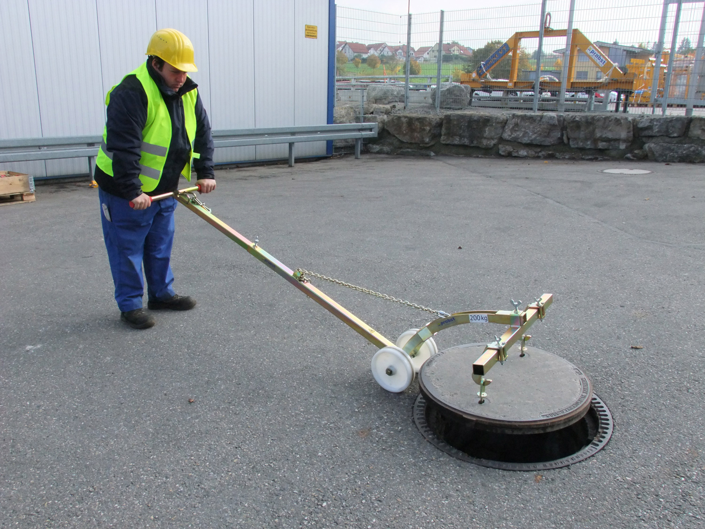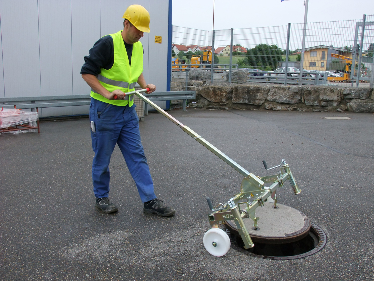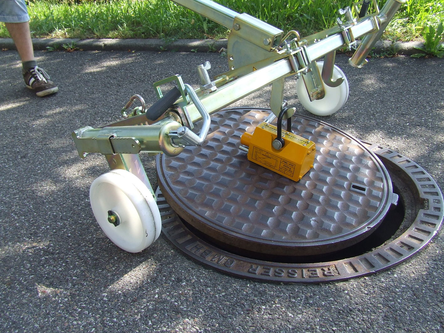 It takes a lot of muscle power to lift manhole cover out of their frames manually using a hook. Manhole covers may weigh up to 70 kilograms (154 lbs.). Ergonomic considerations make lifting heavy manhole covers a rather risky undertaking. Even if two persons lift the heavy covers, injuries may occur.