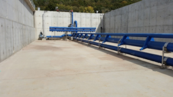 Jets are mounted to the basin floor and rely on water depth and bubble residence time to achieve a high level of oxygen transfer efficiency. Ditch depths can range from 12’ to as high as 24’, maximizing oxygen transfer, greatly reducing footprint, and resulting in construction cost savings. Additionally, independent control of mixing and aeration allows for complete mix in the ditch, while varying blower speeds control dissolved oxygen levels.