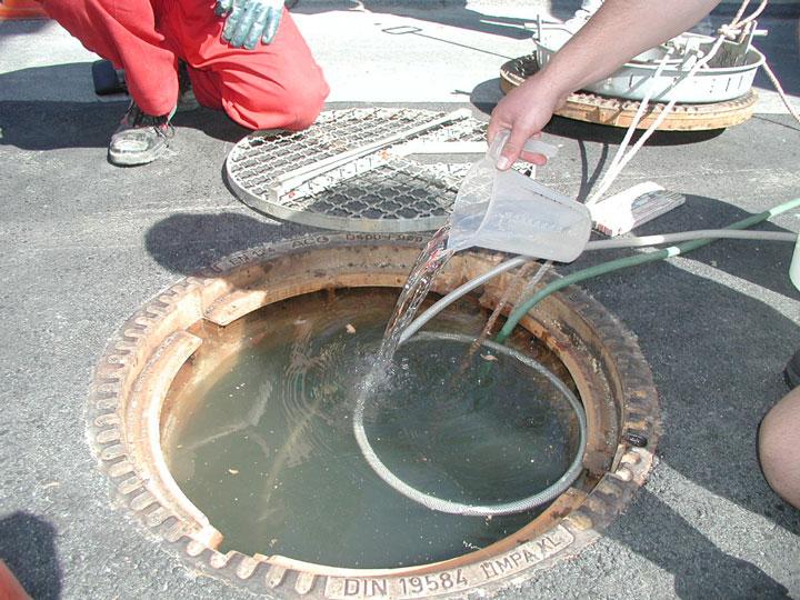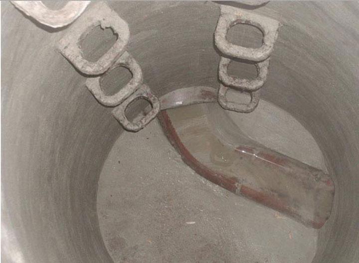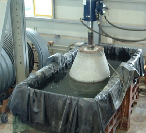 To complement these on-site measures, experiments were carried out in the IKT-laboratories and test facilities. In this way, for instance, the effects of intensive traffic loads on a coated manhole could be simulated or the bonding behaviour of coatings on water-saturated concrete surfaces could be investigated further.