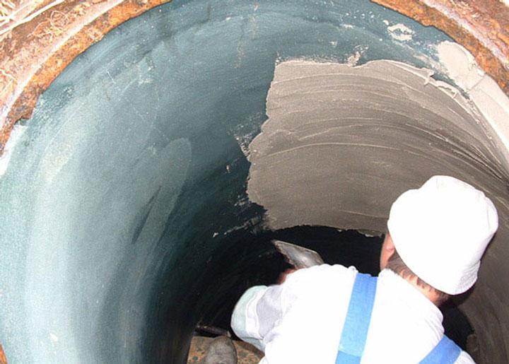 Brick-built manholes with strong joint corrosion and concrete manholes with advanced concrete corrosion have a very uneven wall surface. Before these manholes can be coated by spray lining, the surface needs to be flattened manually with a pre-coating of mineral mortar first.