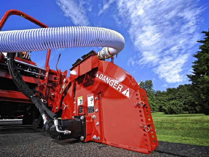 Using specially designed and manufactured saw blades, the Ditch Witch MT12 cuts through asphalt to create the ideal trench for fiber-optic cable installation—from 0.75 inches (19 mm) to 1.25 inches (32 mm) wide, and up to 12 inches (305 mm) deep—in one quick, efficient pass. The narrow, shallow trench created by the MT12 enables contractors to install fiber above existing utilities, so there is minimal disruption of surrounding infrastructure and roadways, which saves time and money. The MT12 offers a choice of four saw blades with widths of 0.75 inches, 0.95 inches (24 mm), and 1.25 inches. Each blade can be easily changed in the field with standard hand tools, reducing downtime. Three blades feature conical bits that can be replaced in the field, a design that extends the life of the blade and reduces maintenance expense. A fourth blade features welded shark teeth. The trenching depth of the MT12 is mechanically adjustable—from six inches (152 mm) to 12 inches in one-inch (25 mm) increments. This feature helps the operator quickly set the depth to match job specifications and maintain a consistent depth for the entire length of the trench. The microtrencher can also be manually tilted six degrees to the right or left, which helps the operator maintain a true vertical trench on uneven surfaces. Often it is necessary to cut a trench right next to and parallel to curbs and gutters, which is why the MT12 saw is designed to hydraulically traverse 24 inches (610 mm) from the center of the machine to the right.