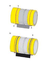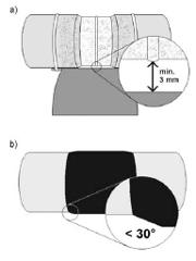 If this difference is smaller than approx. 3 mm (see Figure 3), a minimum coating thickness of 2.5 mm can only be obtained reliably by additional use of a spacer, which could be produced by wrapping one or more layers of a corrosion protective tape on either side of the joint area (see Figure 1b).