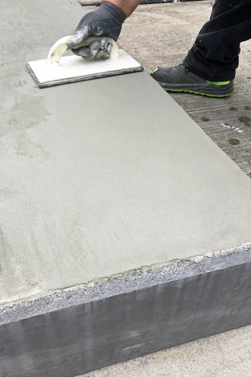 Yet its range of application is broad indeed: It is suitable for both small blemishes and major patching repairs on screed and concrete floors in layer thicknesses from 1 mm to 10 mm, as well as for the repair of steps, stairs, landings and plinths, spalling, cavities and blowholes in one pass with a layer thickness of up to 30 mm. Wall areas too can be filled and patched over large areas with this product.