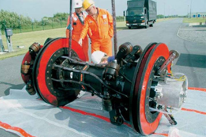 Inspection speeds of up to 5 m/s in gas and operational pressures of up to 200 bar can be accommodated. The tools are fairly light weight. For instance the weight of a 40“ configuration for the inspection of a 100 km pipeline is only approximately 70 kg. Figure 4 and Figure 5 show a CAD drawing and a photograph of the 42“ configuration of the tool.