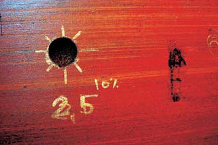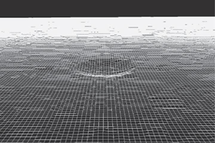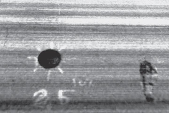 Any anomalies are initially viewed by simply "surfing" through the pipeline. Viewing options include 2D- and 3D-representation as well as wire-frame configurations. The latter enable a detailed inspection of the pipe and the sizing of any flaws found. Figure 3a shows a regular photograph of an anomaly on the surface with a diameter of 25 mm. Figure 3b shows the same defect as seen by the tool and presented in a 2D mode.