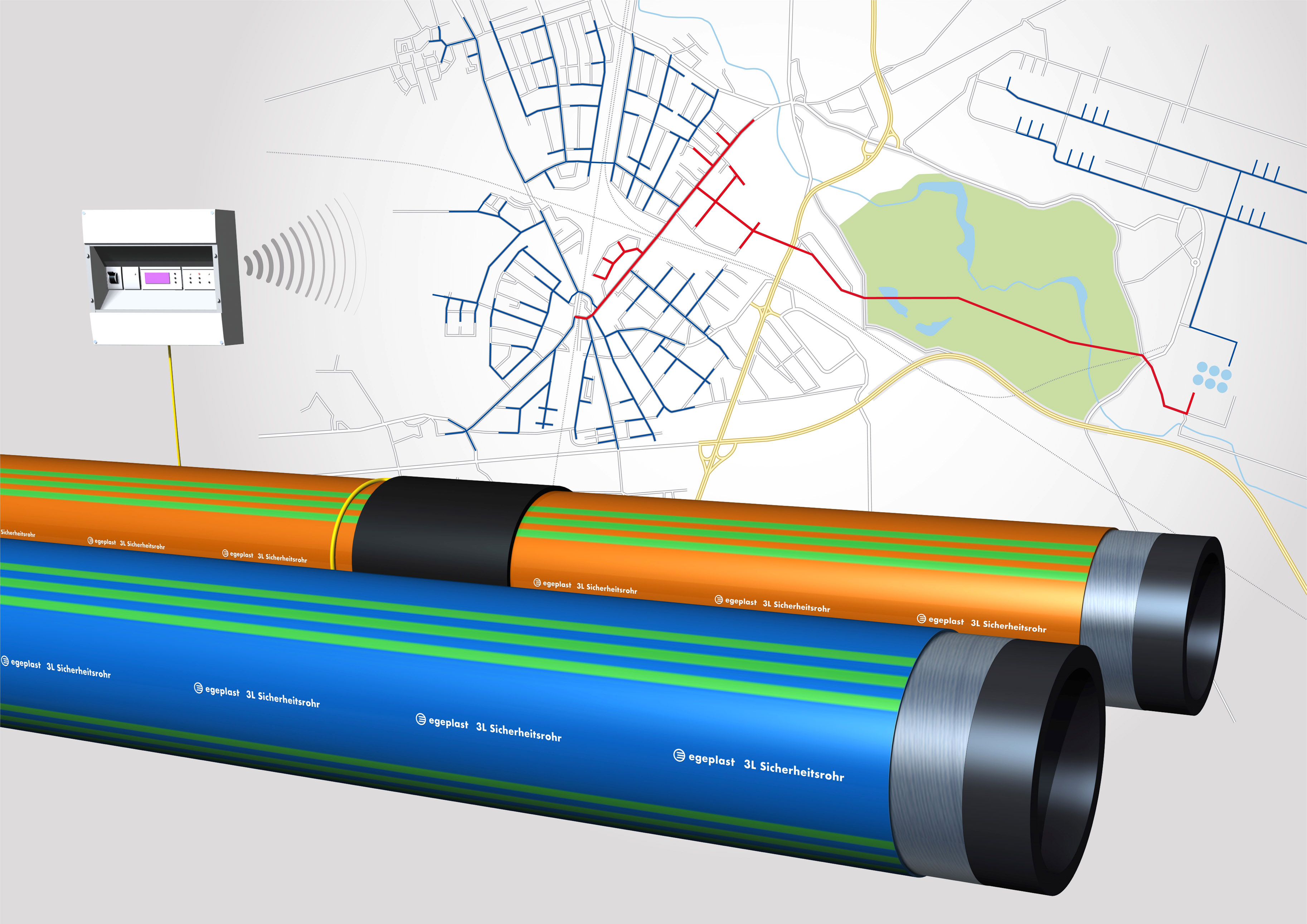 Our primary focus will be on the 3L Leak Control System, a pipe system featuring permanent or intermittent monitoring and designed to report any damages that might occur as well as to indicate the location of the damage even on a mains-independent basis. This type of monitored pipe system provides state-of-the-art remote online inspection and control via the Internet, thus enabling operators to take action quickly if required.