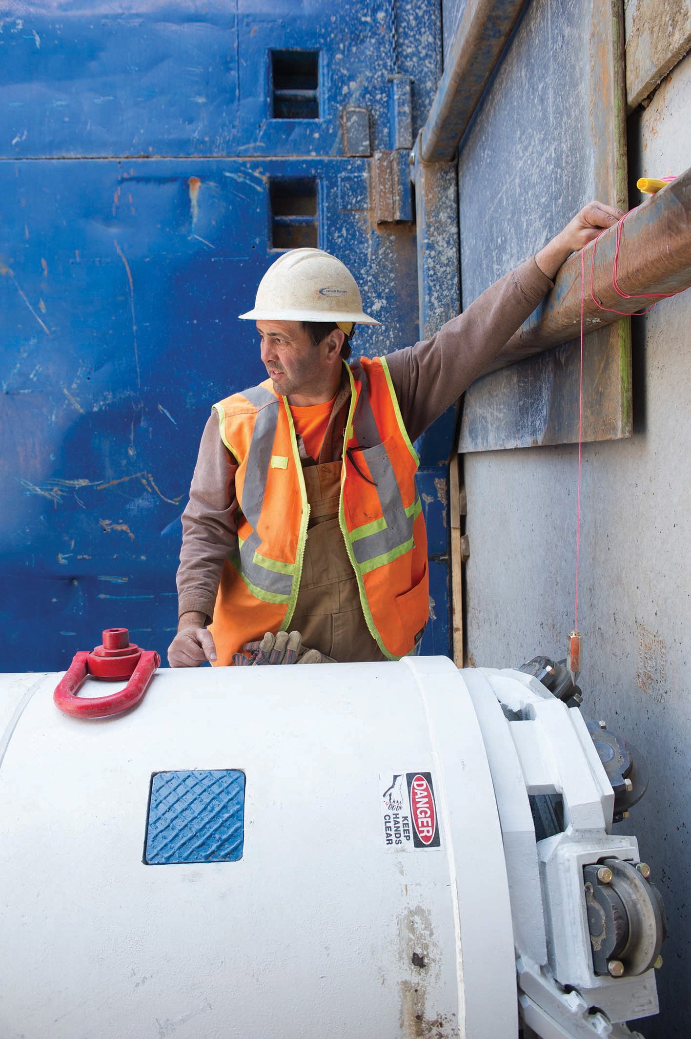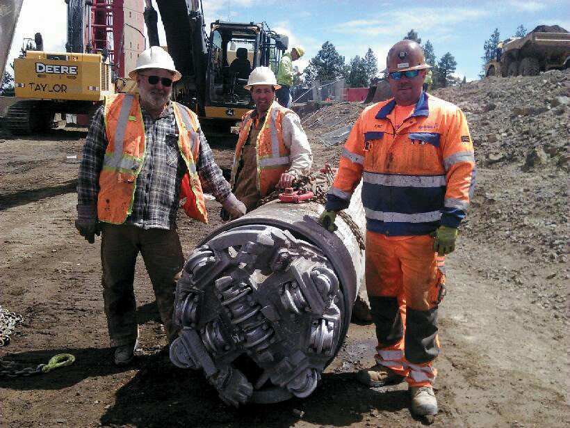 The machine began boring in volcanic basalt rock that was full of fissures, fractures, and rubble pockets between 5,000 and 7,000 psi (34 to 48 MPa) UCS. While the start-up was rough going, crews quickly began getting rates of 20 ft (6 m) per day. “As we got used to the machine we went up to 40 ft (12 m), and one day we even got 50 ft (15 m). We were able to cut off a couple weeks of our schedule time. Taylor NW was very pleased about it. When you look down the pipe now after it’s finished, it looks like a rifle barrel. There is no sag, it’s all in one straight line,” said Stadeli.