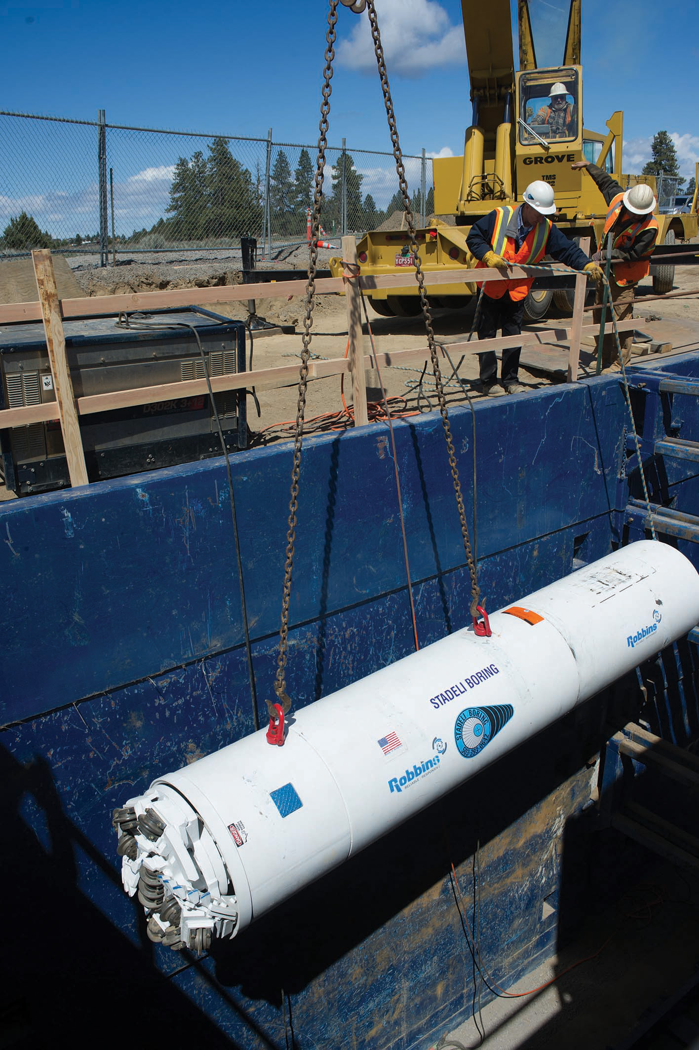 Fortunately, there was a solution available to help them. The contractor turned to The Robbins Company, a business that they had worked with many times over the years for their Small Boring Units (SBUs). Stadeli first contacted Robbins 10 years ago to rent a 30-inch standard Small Boring Unit (SBU-A), and has since rented dozens more. The company currently owns two SBU-As, but their Bend, Oregon job required precision guidance systems that their SBU-As lacked. “We met with Robbins in Ohio and told them what our needs were. They felt like their 36-inch (900 mm) prototype machine, which they had tested at one other job in Oman, would be a good fit. They listened to what we were wanting and needing to have done,” said Stadeli.