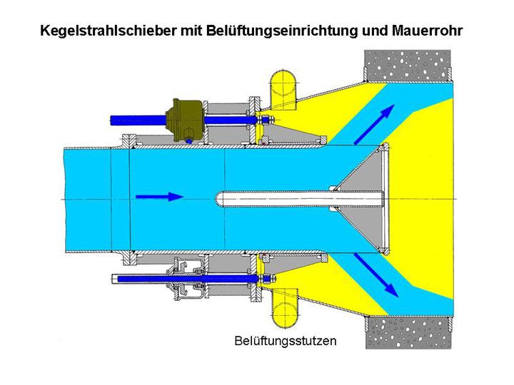 - The constructional conditions, which could be changed only to a limited extent, made the difficult installation of the hollow jet valves weighing up to 23 tons even more difficult.