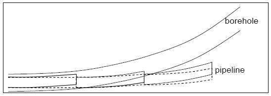 - A deviation of the axial shape of the bore hole with respect to the drilling line and therefore a deviation of the pulling in line for the pipeline