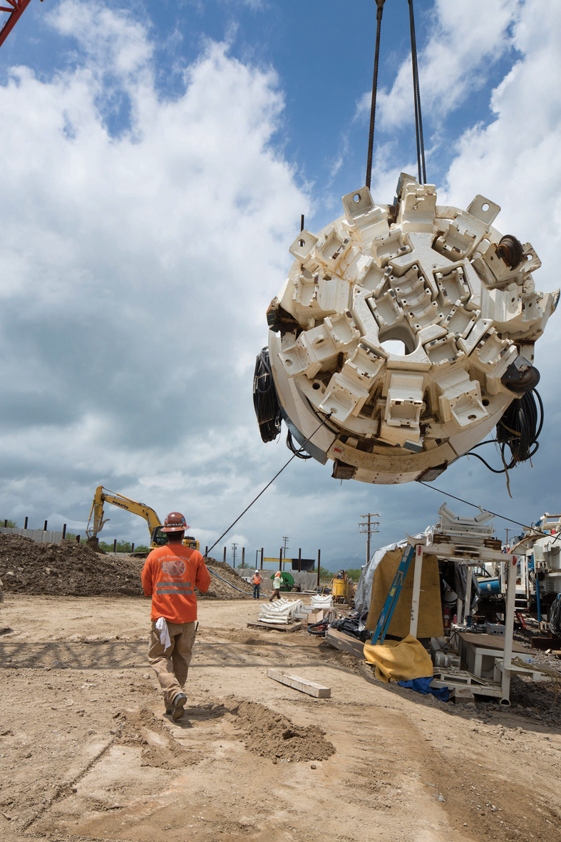 In the spring of 2015 by the idyllic shores of Oahu, a Robbins 3.96 m (13.0 ft) diameter Main Beam TBM began its long journey. The TBM started its excavation on a 4.6 km (2.8 mi) drive for a new sewer tunnel in Kaneohe, Honolulu, Hawaii, USA. The machine, nicknamed Pohakulani, meaning “Rock Girl” in Hawaiian, launched from a 23 m (74 ft) deep starter tunnel on a mission to bore through almost 4.8 km (3.0 mi) of basalt bedrock. Contractor Southland/Mole JV is building the Kaneohe-Kailua Wastewater Conveyance Tunnel for the City and Council of Honolulu, which will improve wastewater infrastructure by eliminating overflows during rain events.