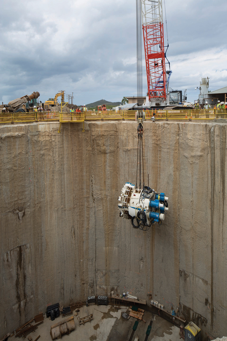 The deep tunnel option was not the first design considered for the project: preliminary plans called for a smaller tunnel traveling under the bay. As Kaneohe Bay is an environmentally-sensitive area, a deep tunnel remained an attractive option. Richard Harada, of project consultant Wilson Okamoto Corporation, explains the ultimate decision: “A number of factors were considered in making the decision to build a deep tunnel including reliability, construction costs, life cycle costs, environmental impacts, constructability and qualified contractor availability.”