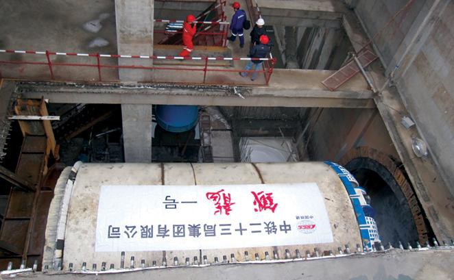 The Robbins machine was designed to excavate a matrix of alluvial geology found nowhere else in China, consisting of highly permeable pebbles, sand, and clay. A mixed ground cutterhead, mounted with 17-inch diameter disc cutters and carbide bits, was manufactured specifically to effectively excavate the geology. A foam injection system stabilizes running ground, with each cubic meter of foam mixture able to stabilize about 40 rings of ground. Subsidence is being intensively monitored and crews are trained to utilize probe drilling and ground consolidation if settlement is detected.