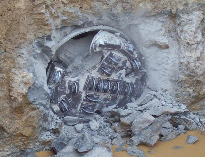 Turn-key Tunneling launched the SBU-A on January 22, 2009 in conjunction with a 60-1200 ABM. The rock, consisting of limestone up to 20,000 psi (138 MPa) UCS, and the 2.91% grade presented challenges early on. The cutterhead drifted while boring through several dirt seams as well as a mud-filled cavern, which momentarily slowed progress. "We continued to make progressively smaller adjustments and the SBU responded very well. The last 200 ft we bored were very true and required little fine-tuning," said Roger Lewis, Project Superintendent for Turn-Key Tunneling. The machine broke through on March 11, just 0.17 in (4.3 mm) off of line and grade and well within its contractual ± 3 in (8 cm) requirements.