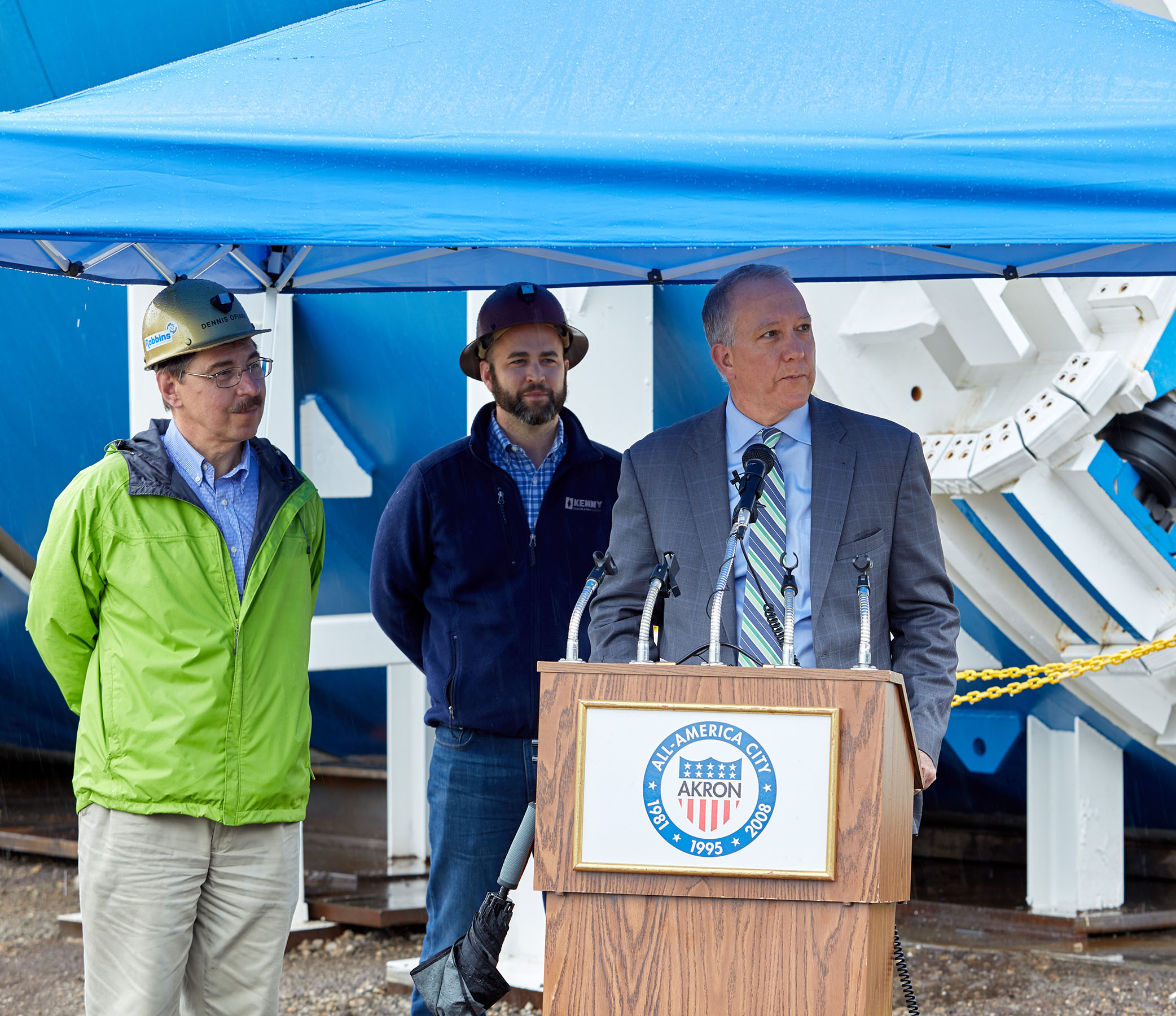 Those present included Akron Mayor Daniel Horrigan, Robbins chief engineer Dennis Ofiara, and David Chastka, project engineer for contractor Kenny-Obayashi JV.