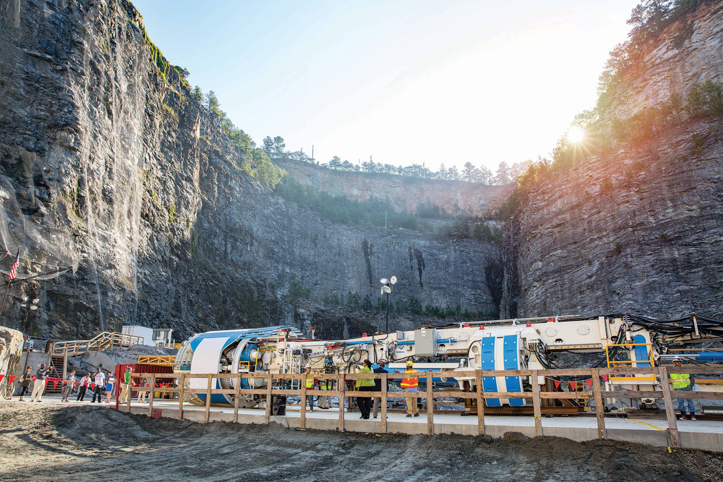 With the tunnel on the fast track, swift TBM assembly was key. The OFTA process involved coordination by multiple crews at the large quarry site. “The OFTA went very well. The overall assembly process was well organized and supervised by the Atkinson/Technique JV and Robbins. We had a good team of folks to put it all together,” said Huie. He continued: “This is a unique job where there’s a lot of people with a variety of backgrounds, but everyone came together to make the OFTA happen.”