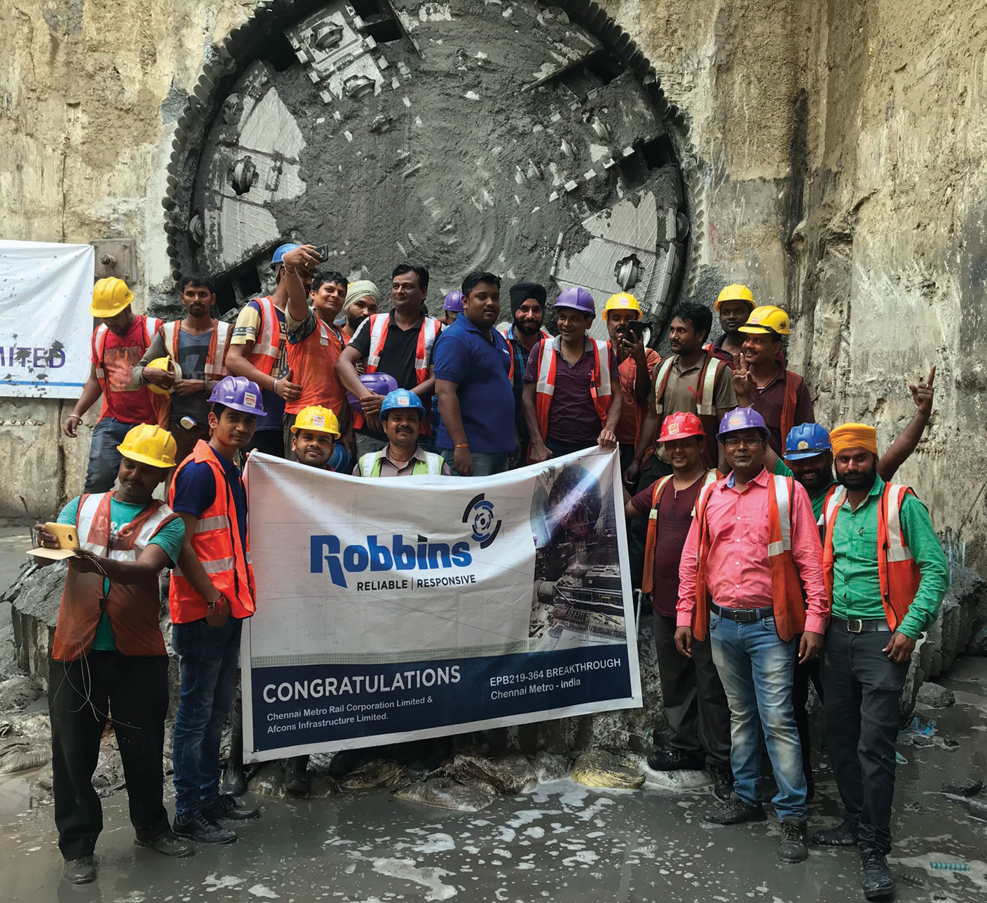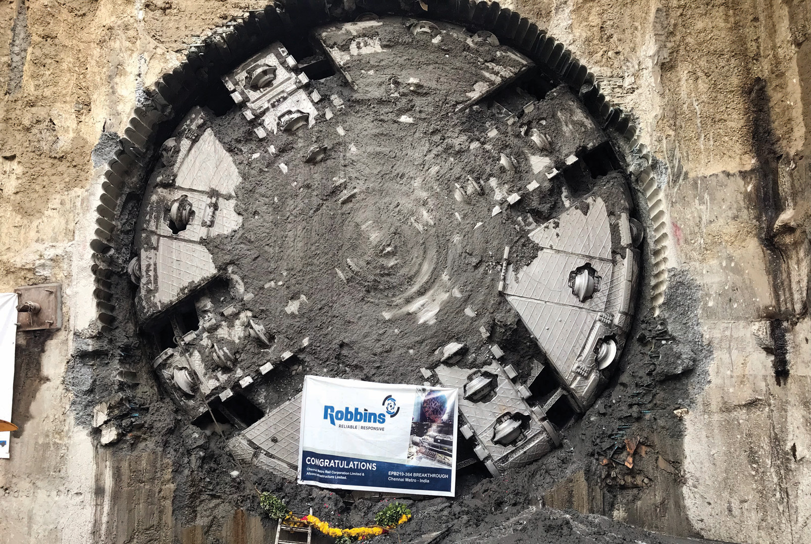 On Tuesday, October 31, 2017, a 6.65 m (21.8 ft) diameter Robbins EPB TBM broke through at Chennai Metro, making this the third tunnel the machine has bored for the project and for contractor Afcons Infrastructure Ltd. The three separate bores for the EPB are part of an increasing trend, as many Robbins EPBs have been used on multiple tunnel drives with good performance.