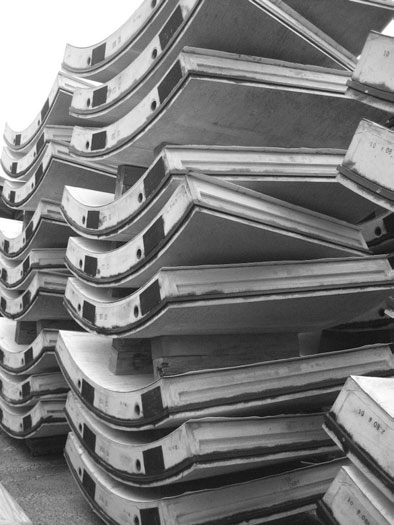 The remedy was to implement a system which included segment lifters and a segment feeder. The segment lifters allowed the two rings worth of segments to be offloaded and stored on the backup in an instant, allowing the trains to immediately return to pick up another load. The feeder stored enough rings immediately behind the erector to keep it supplied, even though the erector used segments faster than the trolley could bring them. The feeder became depleted at the end of each build but there was enough time to refill it during the push. (see Figure 5)
