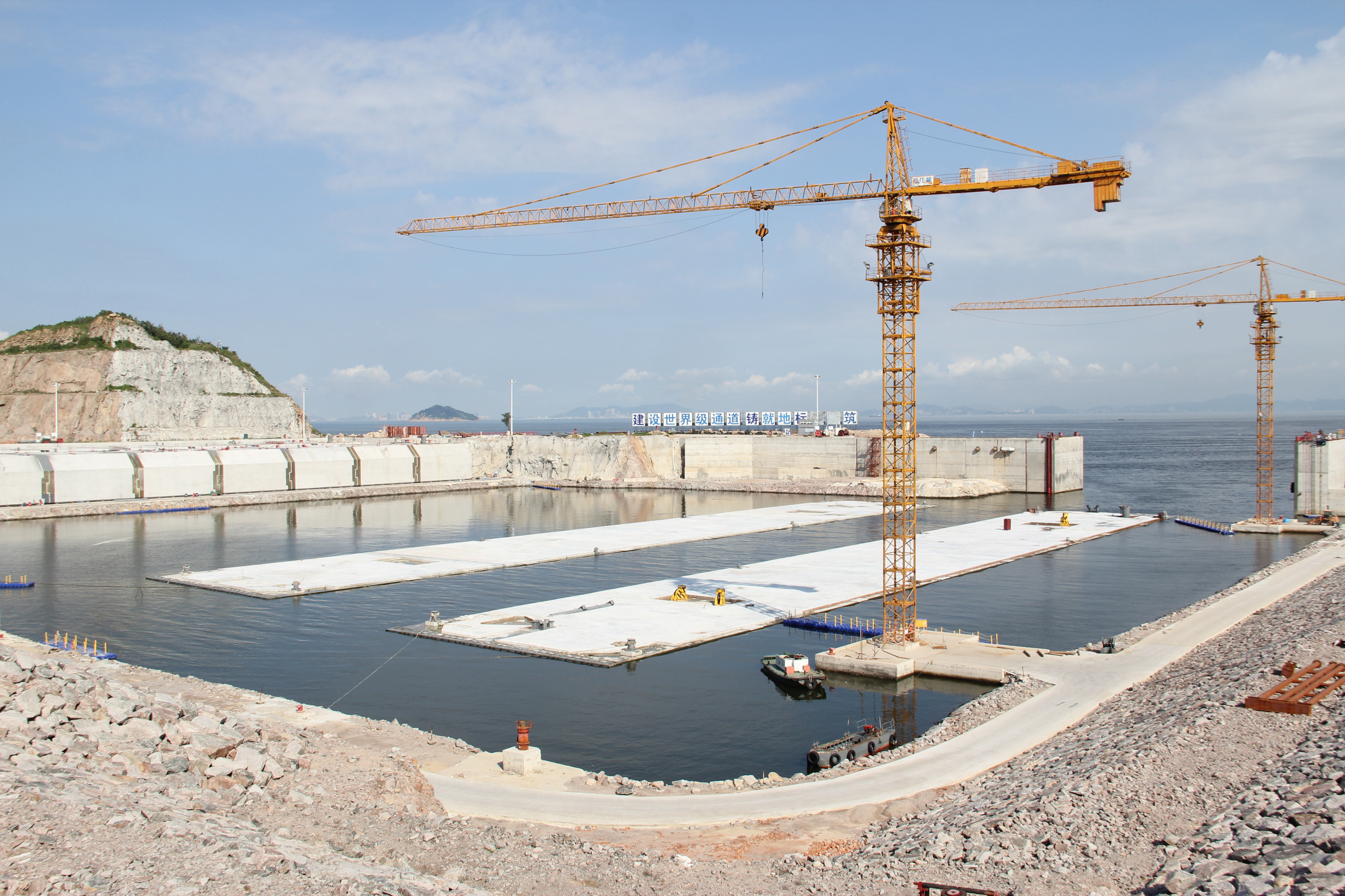 "The duration of the contract for the island and tunnel project is six years. At present, we’ve finished installing the first two tunnel sections, using half of the duration of the contract. The first two are 112.5 meters in length and weigh 50,000 tonnes respectively while, from the third one on, the tunnels are 180-meter-long and weigh 80,000 tonnes," says Lin.