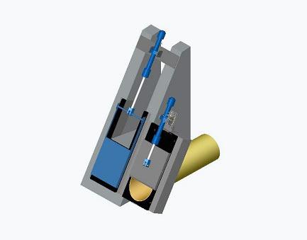 FT slides are inclined against the direction of flow at less than 60°. The slide plate consists of stainless steel and is ground on the underside. It slides by means of the lift of hydraulic cylinders with a speed up to 7 m/min into up and down positions. SD slides can be manufactured up to a diameter of 1.10 m. The essential functions are the same as the functions of the cascade weirs. The effect of sewer cleaning could be tested approximately over 1.6 km in the project of D-Spaichingen.