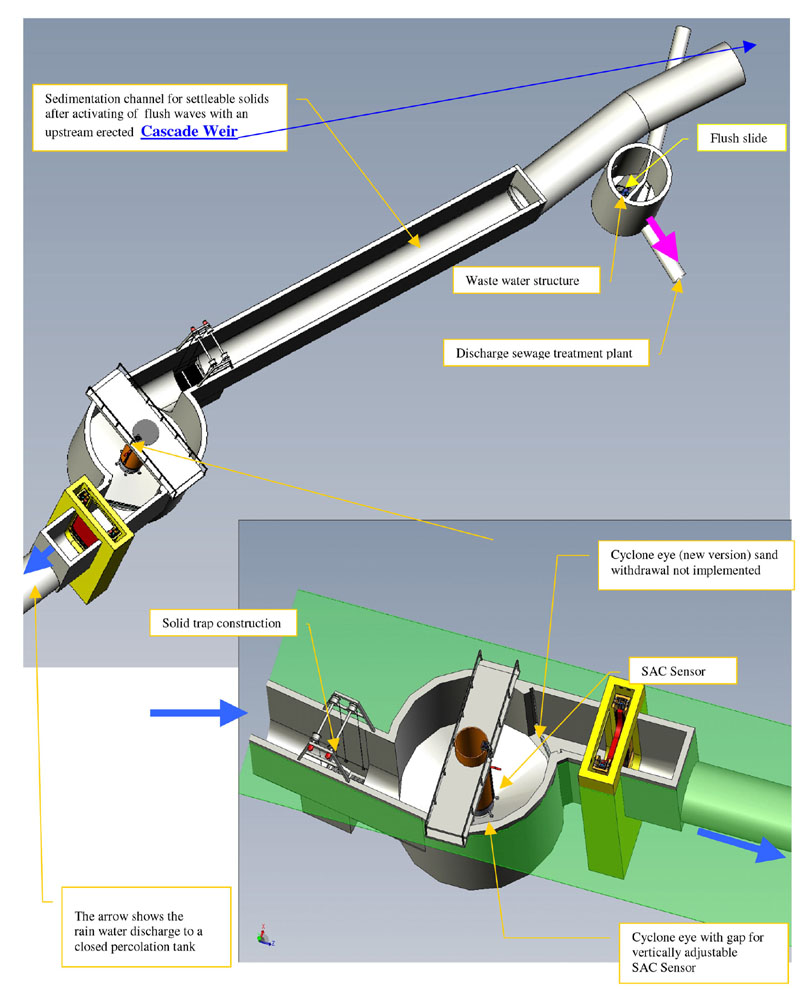 The target is to use the round cyclone for different functions. A new version for the quality management of rain water discharge shows Pic. 11. as an overlaid picture.