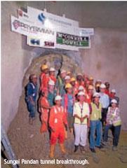 The excavation of the 2.4 metre internal diameter, 675 metre Sungei Pandan pipe jack tunnel, which is being built to accommodate three transmission powercable circuits, was completed on 22 October 2005 three weeks ahead of schedule.