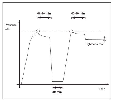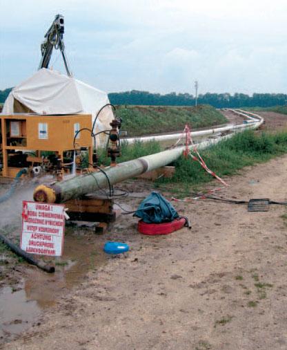 The water pressure test carried out according to the stress test method is performed on pipeline sections laid in the ground which have been filled with water to exclude air if possible. During the filling process, pigs (pipeline inspection gauges) run against a certain supply pressure. The water or air supply pressure must be high enough to ensure that the water column between pig and filling point remains dense throughout the entire filling process and does not break at local peaks.