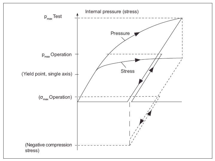 The load cycle performance of any faults and deformations withstanding the loads applied during the stress test is clearly improved. Around crack-tips and locations with high stress concentrations in particular, yielding will occur due to high internal pressure loads. This, in turn, will improve pipe geometry leading to lower stress concentration factors (SCF) and negative compression stress during pressure relief.