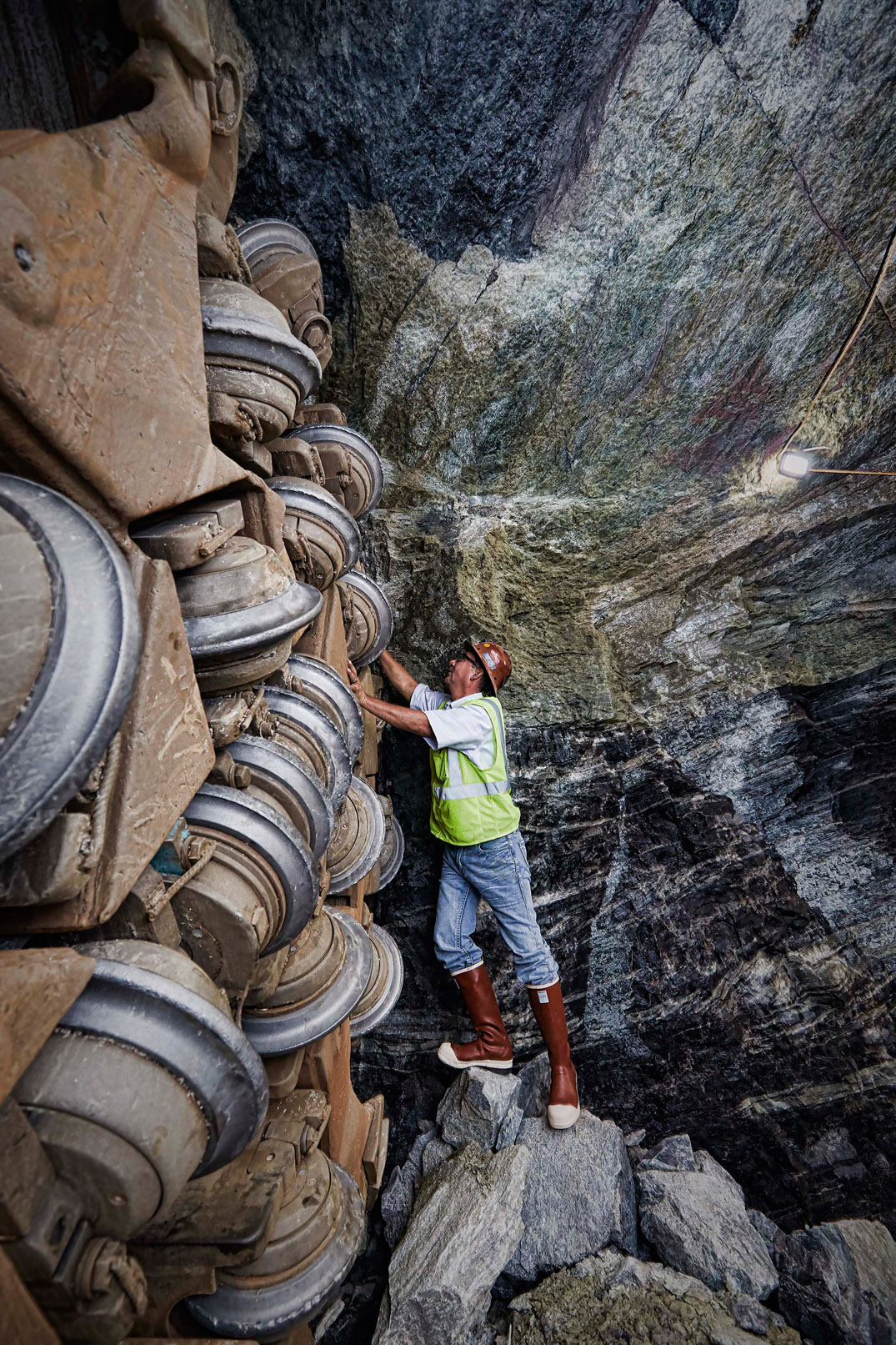 Hard granitic rock challenged the 19-inch disc cutters from the outset. “There was ground so hard that it would take eight hours to go 1.5 m (5 ft). It was between 117 and 310 MPa (17,000 and 45,000 psi) UCS. The beginning of the job was tough,” said Weslowski, but he added that once the learning curve had been overcome “they started breaking project records left and right towards the end. We got a best day of 38.4 m (126 ft). Rates just kept increasing.”