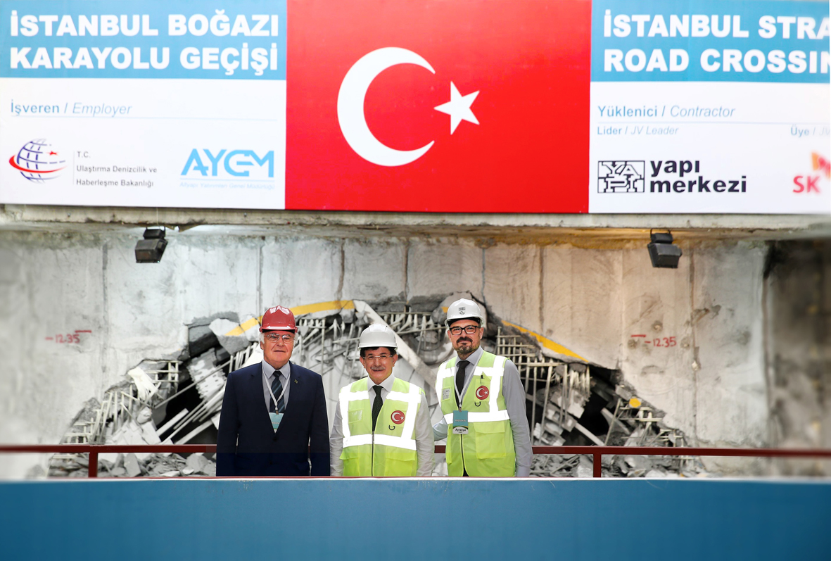 When attacking great challenges in tunnel construction no one ever did before, state-of-the-art technology is one thing. Much more decisive is an unshakeable pioneering team spirit and trust in each other – especially when things get really tough. Tunnelling crews at the Eurasia Tunnel have proven that impressively when breaking through in Istanbul on August 22, 2015 in the presence of Prime Minister Ahmet Davutoğlu, Minister of Transport Feridun Bilgin and former Minister of Transport Lütfi Elvan.