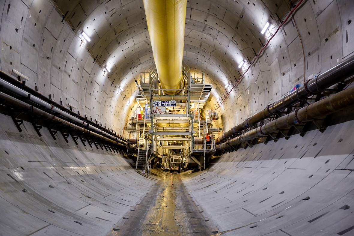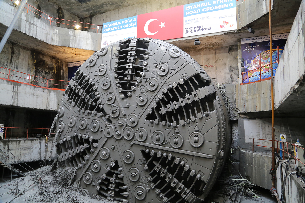 The Bosphorus road tunnel project which broke through this week in Turkey's great city of Istanbul, is a major achievement on one of the world's biggest and most challenging tunnel drives. At 13.66m diameter and 11 bar of water pressure in fractured rock and soft ground the 3.34km long bore is unprecedented. It has needed skillful engineering on site and extended TBM technology to do it.