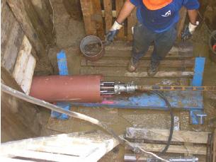 Manhole bursting rigs, already known from static pipe bursting, operate with pulling forces between 200 and 400 KN (45,000 – 90,000 lbs), depending on pipe size and also use QuickLock rods. The rig can be used for bursting as well as calibre pipe bursting and the Tight-In-Pipe method.