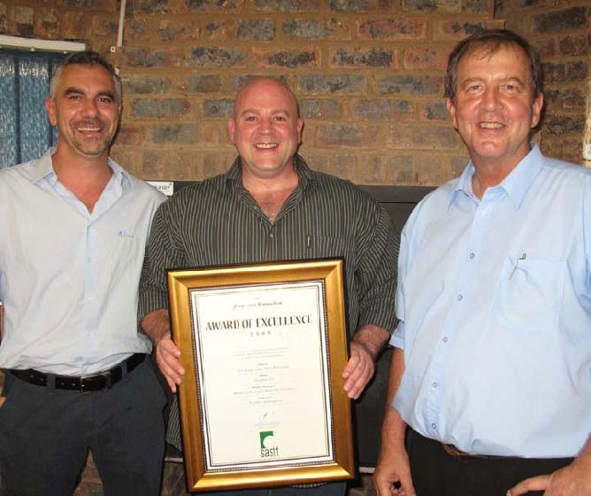 The award was presented to Sam Efrat (managing member) and Marco Camarda (general manager) of Trenchless Technologies cc at the SASTT Annual General Meeting by the outgoing SASTT President Mr Johann Wessels.
