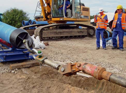 Once the pipes had been successfully pulled in the new pipeline was connected up to the existing system with PN 10 ductile cast iron fittings. The starting and target pits were dismantled and the whole job was finished by the end of October.