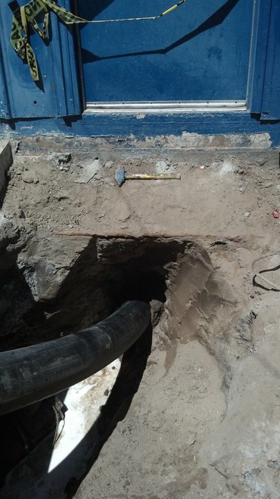 The 65' long 8" VCP main was replaced with 8” High Density Polyethylene (HDPE) Pipe using TRIC's M50 pipe bursting system. Bob Grenier, Municipal Sales Director and Stephen Parfery, Service Manager represented TRIC on the Project. Mr. Grenier fused the 8" pipe with a GF Connectra's 28CQ Fusion Machine that was co-engineered by TRIC's Ward Carter. Bob said, "The pipe entered in with a 22 degree bend before it straightened out going on a straight line under a cynder block that supported the office." He continued, “The crew had used other pipe bursting equipment before but seemed really impressed on how flawless the job worked out with TRIC."