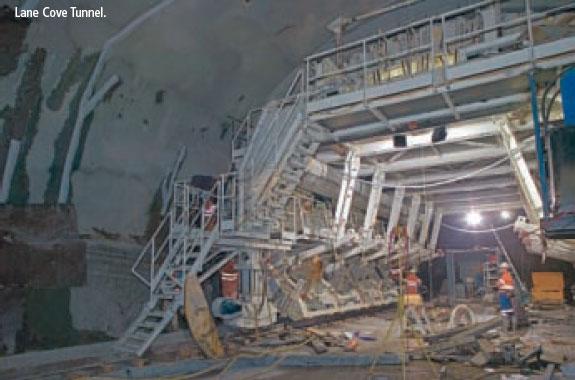 Located north of Sydney CBD the Lane Cove Tunnel is a 6 km freeway primarily comprising of an electronically tolled 3.6 km twin tube tunnel and a 2.6 km upgraded section of an existing freeway. This project is being constructed under a BOOT contract at a cost of $A1.05 billion with a 33 year concession period. The tunnel is being excavated using road headers with support provided mainly using permanent rock bolts and shotcrete in more problematic ground steel sets.