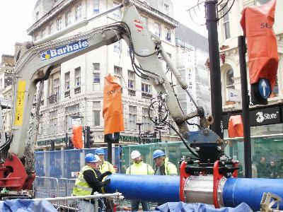 The Steve Vick International Pipe Handler has recently been used on Oxford Street, central London, to slipline a large diameter cast iron water main.