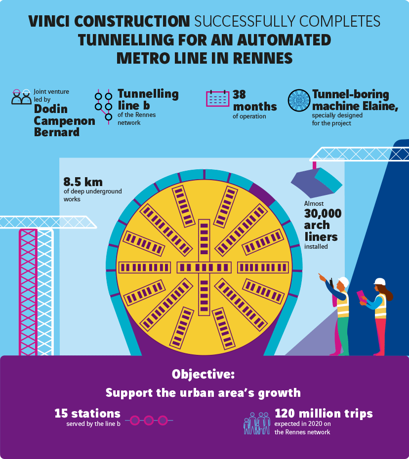 VINCI Construction, through a joint venture led by Dodin Campenon Bernard and including GTM Ouest and Botte Fondations, both subsidiaries of VINCI Construction France, along with Spie Batignolles TPCI, Spie Fondations and Legendre Génie Civil, has successfully completed tunnelling Line b, the second automated metro line in Rennes, for regional authority Rennes Métropole and transport authority Semtcar.