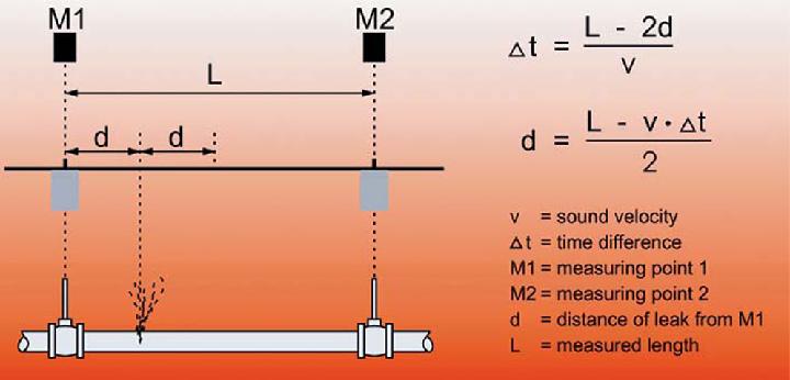 Different from electro-acoustic principles to locate water leaks, which are using different kinds of microphones to analyse loudness of leak noises for pin-pointing, correlation is based on the run-time difference of acoustic signals created by the water discharging from the leak.