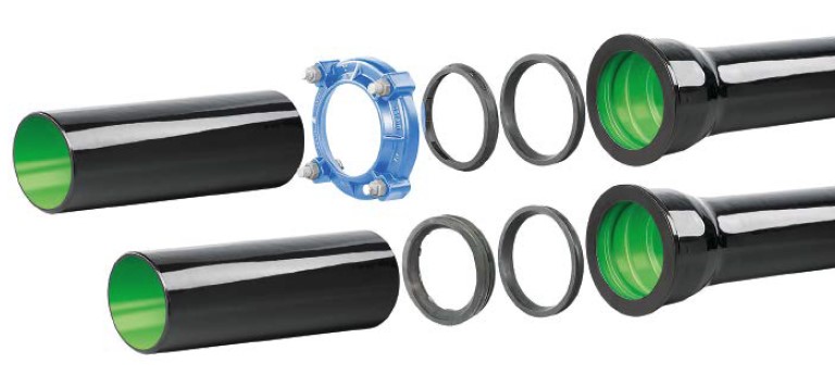 All vonRoll socket system products – ductile cast iron pipes, fittings and shut-off valves – were secured with its own flexible vonRoll HYDROTIGHT restrained joint system.
